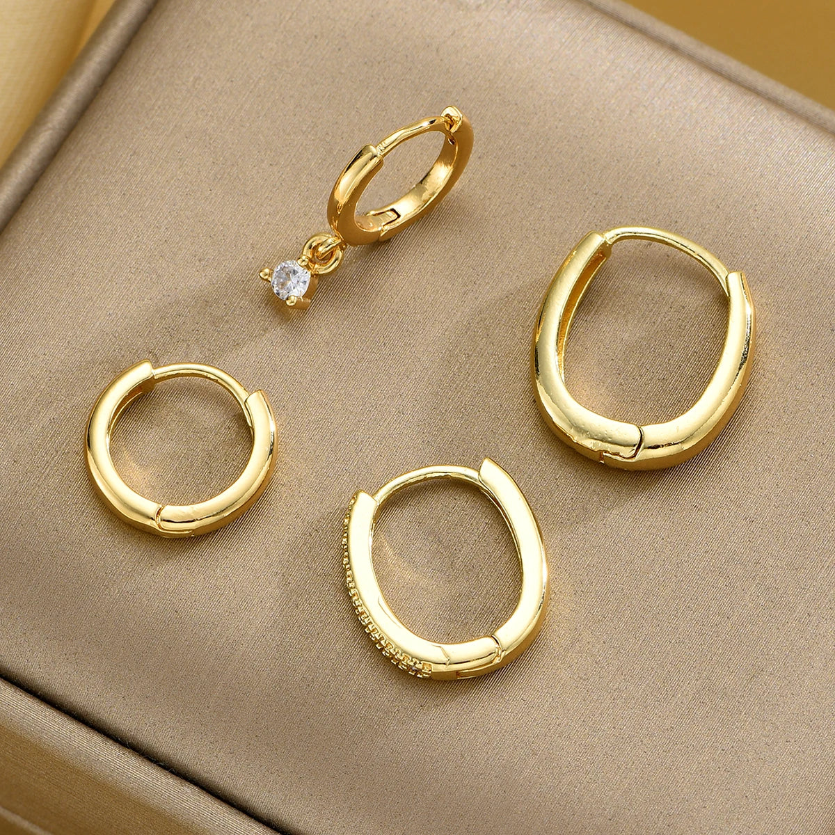 Luxoria Golden Edge – 4-Piece Hoop Earring Set
