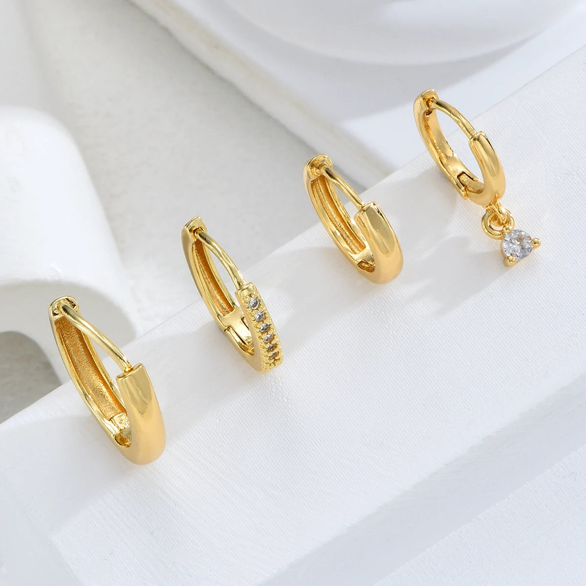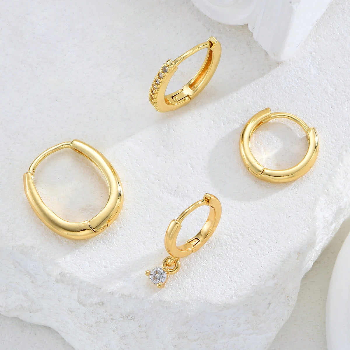 Elevate your edgy style with the Luxoria Golden Edge Hoop Earrings. This 4-piece set features gold-plated geometric huggie hoops adorned with sparkling zircon accents. Punk-inspired yet versatile, perfect for women and unisex fashion lovers, ideal for parties, daily wear, or gifting a bold rock-chic accessory.